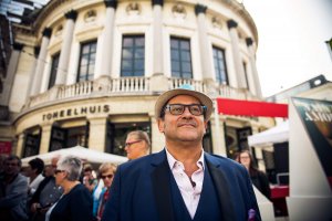 60 jaar Tom Lanoye in één tekening door Peter Goes.